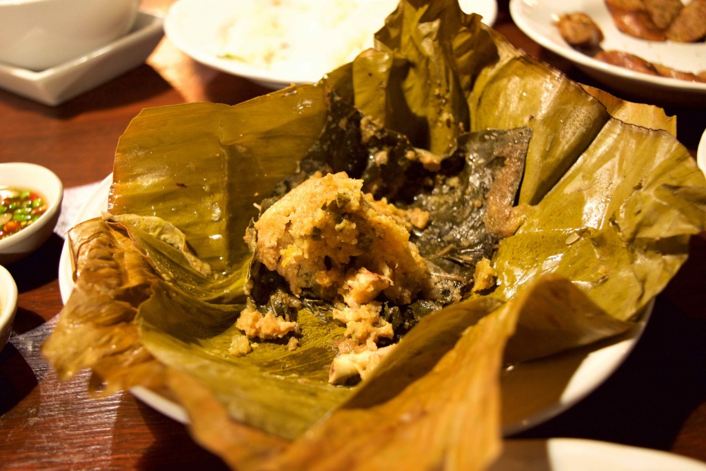 While we really enjoyed the tea leaf salads in Myanmar, we were absolutely craving spicy Thai food. Enter another blog post on eating in Thailand. Our first destination was Tang Restaurant where we dined on delicious meats, sticky rice, and nam prik. Feeling adventurous, we also ordered something new: a chicken dish that was mixed with herbs and cooked in a banana leaf. We topped it off with a small fruit and brownie dessert that we shared at Fruiturday. Chiang Mai has a bunch of dessert shops like this that specialize in tropical fruit this and that, like shakes, yogurts, and baked goods.