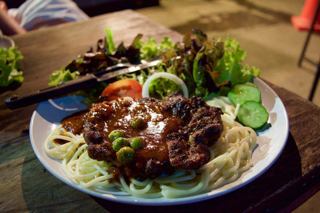 And yes, I did have a chicken dinner that night. Shiv opted for beef. But he didn’t score any vintage finds so it’s ok. We ate at a funky, little roadside place called Steak Meet Love. It’s where Thai and Italian cuisines intersect. It was interesting and hearty.