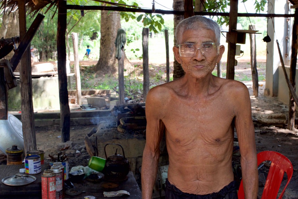 Our last stop on the bicycle tour was to a Cambodian family’s home. We met an eighty-two year-old blacksmith who still hones his craft in the front yard of his house. He also likes to make kites in his spare time. Cambodian kites make noise when you fly them, and his granddaughter gave me a demonstration of how to make the kite sing. After two tries, I was finally successful! My other favorite memory from this stop was the two year-old grandson who was stark naked except for his shoes. Why the shoes? None of the other kids were wearing them. If you had no clothes on, why put shoes on? Kids…gotta love ’em.