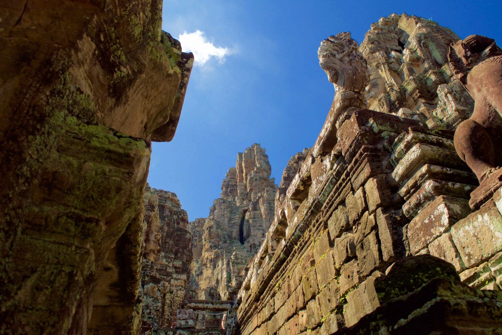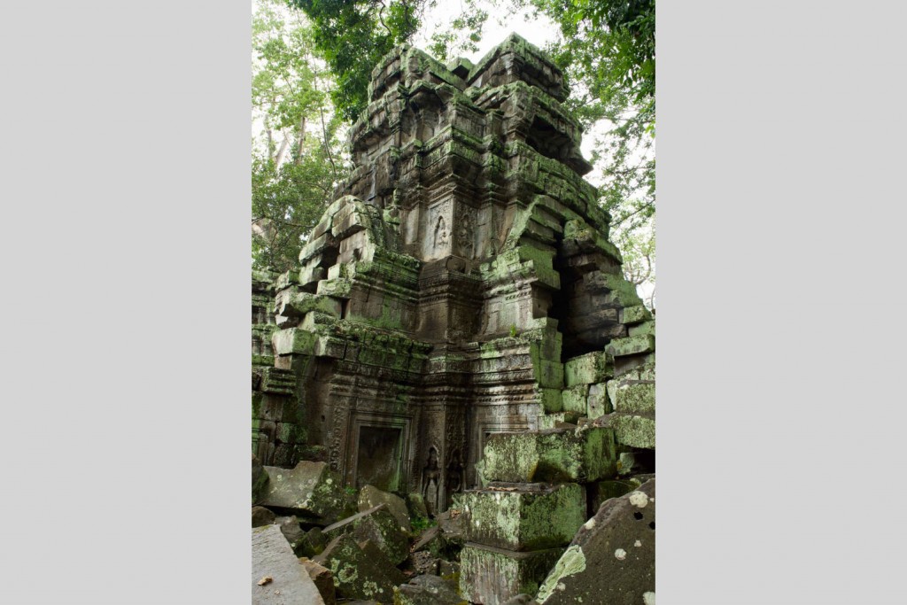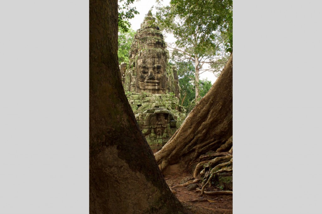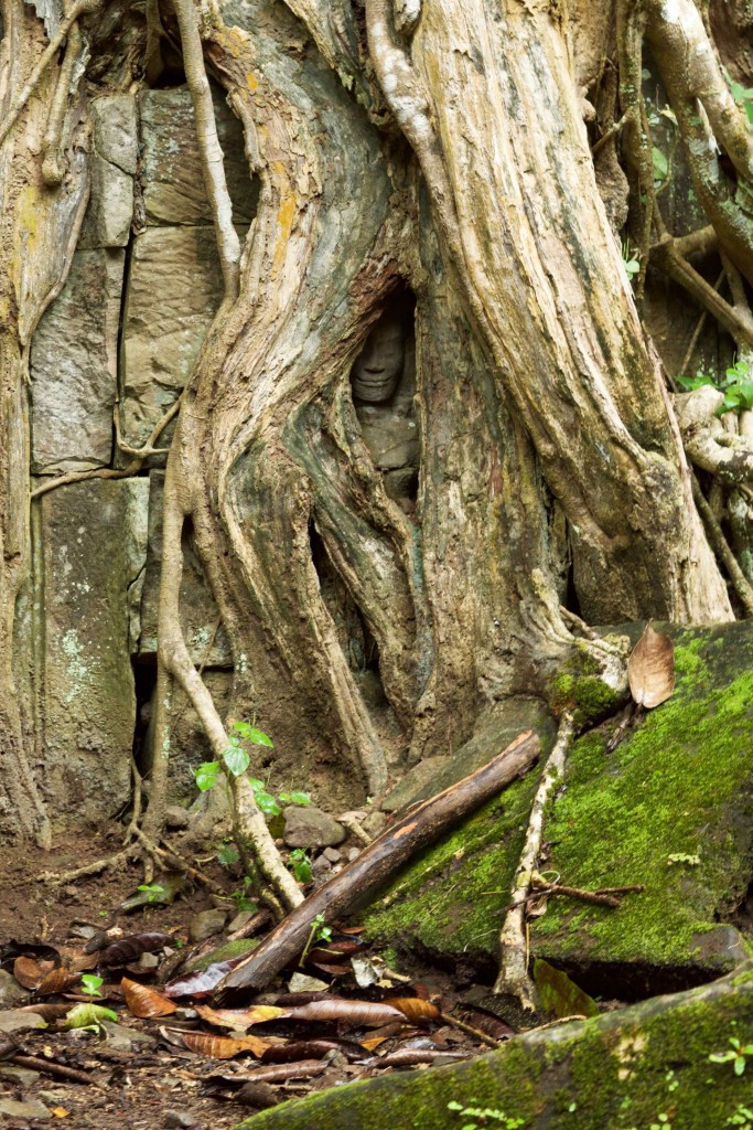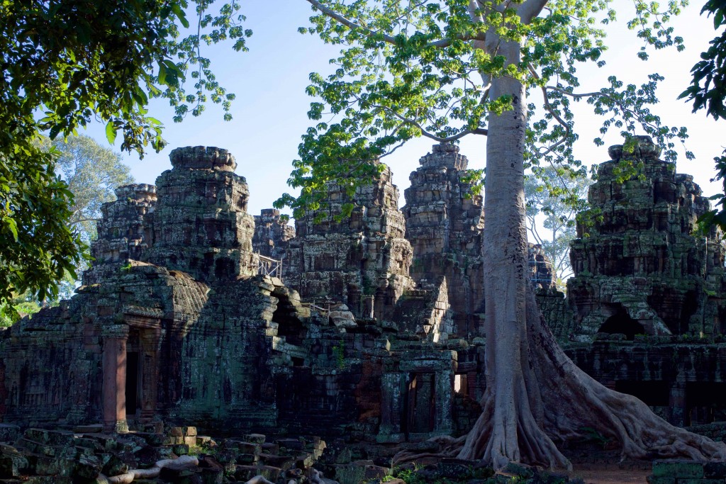 Our first stop on the tour was the famous Lara Croft Tomb Raider temple, also known as Ta Prohm. This is the temple that has a lot of the tree-in-temple photo opportunities. The massive fig and silk-cotton trees grow right out of the side of the temple, upwards towards the sky, while their roots dig into the ground. Originally Buddhist, it was constructed between the mid-12th and early 13th centuries by King Jayavarman VII.