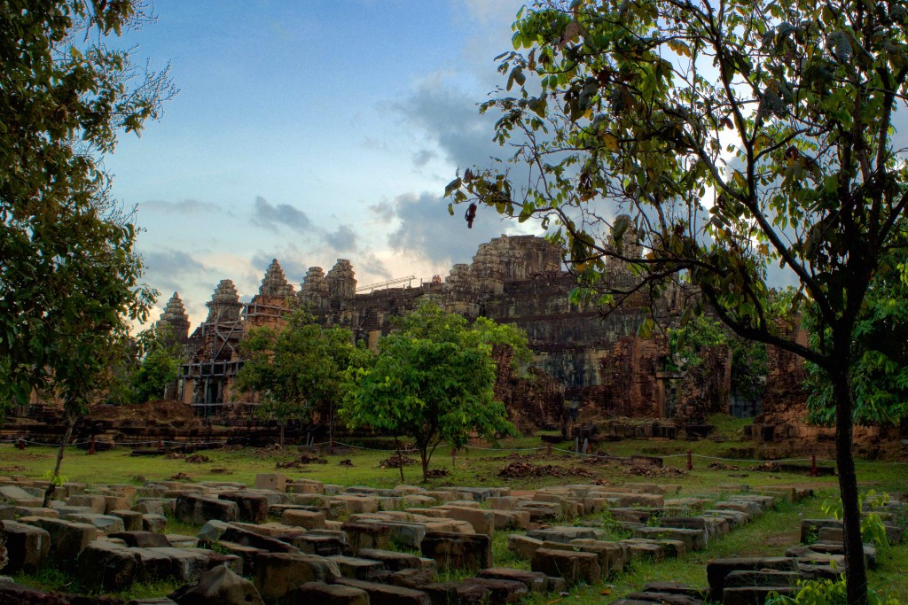 Phnom Bakheng was built in the 9th century and was originally dedicated to Shiva. It predates Angkor Wat by two centuries and marks the move of the capital of the Khmer empire from Rolous (where we were yesterday) to Angkor. Later in its history, Phnom Bakheng, like other temples in the area, was converted to a Buddhist temple.