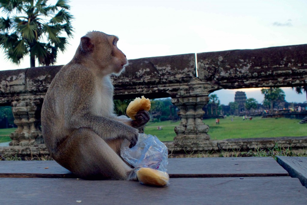 Our group stayed at Angkor Wat until about 6pm. Have I mentioned that it’s really, really hot and humid in Cambodia? Well, it is and everyone was tired and smelly from the long, but educational day. Before leaving, however, we made sure to get some time in with the temple monkeys. I thought they were cute, but I’m sure they are pesky.