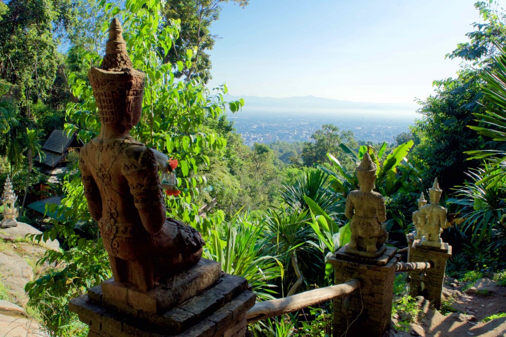 So, we reluctantly trudged up the highway in hopes of finding the next trailhead. Twenty minutes in, we realized we weren’t going to find it. I wasn’t into getting lost in the jungle, so I urged us to continue alongside the highway. And so, our nature hike became an urban hike. While we didn’t have the crisp jungle atmosphere, we did have the opportunity on several occasions to get a sprawling view of Chiang Mai from the vista points.